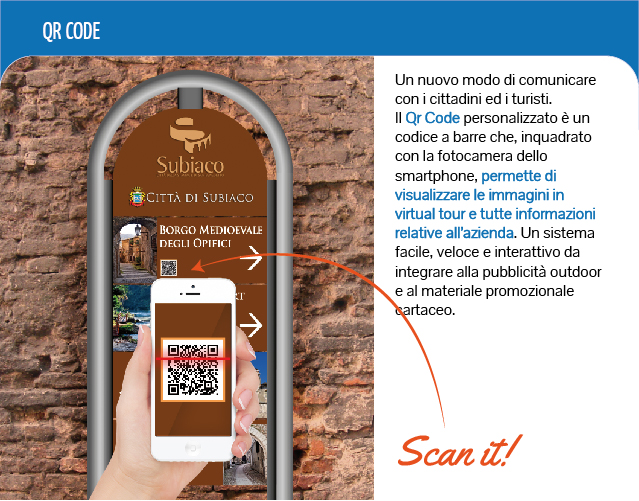 Offriamo alle aziende la possibilità di integrare la promozione sul web con quella outdoor, attraverso l’utilizzo di strumenti strategici in grado di soddisfare tutte le esigenze, quali paline, transenne, segnaletica, cartelli ed orologi. Tutti integrabili con il QR Code, per consentire di collegarsi ai contenuti multimediali dell’azienda.