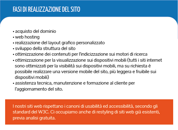 Realizziamo siti web statici e dinamici, completamente personalizzati, in base al target e alle richieste del cliente. Il cliente viene seguito in ogni fase del progetto, attraverso incontri nei nostri uffici o presso l’azienda, finalizzati a comprendere le esigenze ed il target obiettivo delle azioni.
